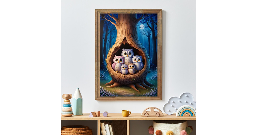 Owl Family Tree Art Print: Cute Owl Poster, Owl Decor, Owl Print, Kids Room Owl Wall Art, Gift for K