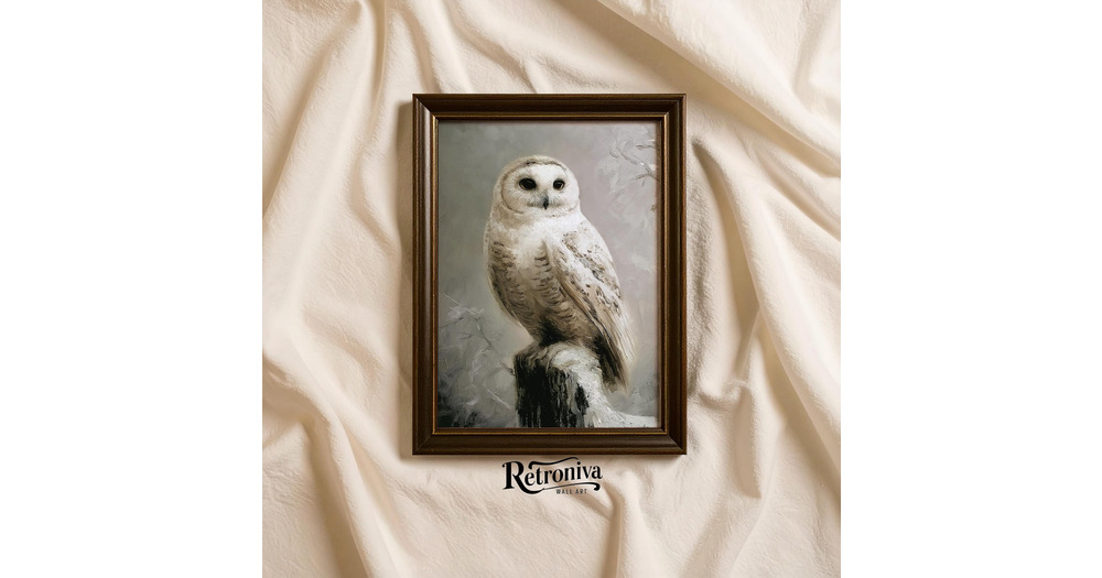 Owl in Snow Vintage Animal Wall Art | Winter Wildlife Painting Rustic Nature Art Print Bird Wall Dec