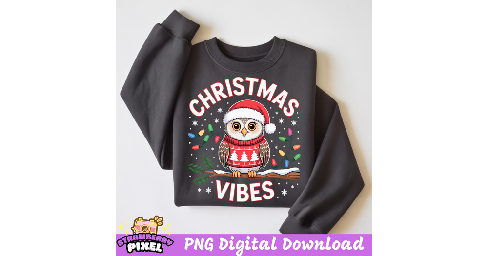 Owl Christmas Png, Christmas Vibes Png, Santa Hat Animal Png, Christmas Tshirt Png, Hoodie Png, Swea
