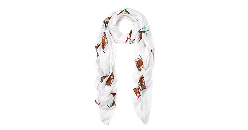 TrendsBlue Premium Night Owl Print Fashion Scarf Wrap, White