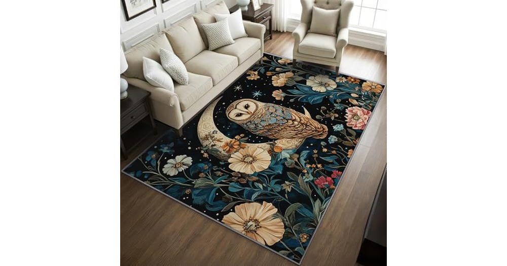 Phtbz Owl Rugs for Bedroom -Wildflower Rug, 4x5 ft, Botanical Florals Area Rug, Moon Bird Washable R
