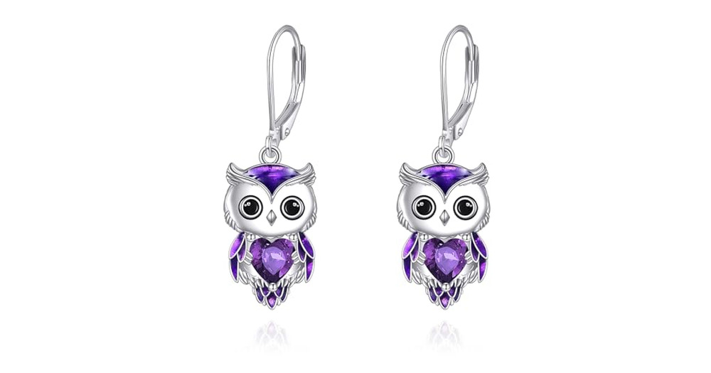 Sterling Silver Owl Dangle Earrings - Birthstone Owl Jewelry for Women - Christmas Gifts (02-Februar