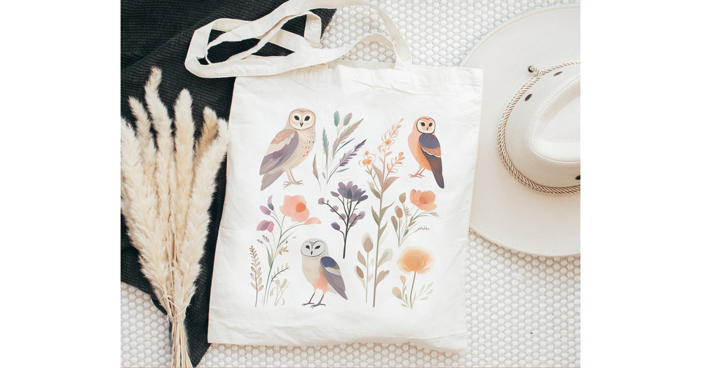 Cottagecore Barn Owl Cotton Canvas Tote Bag: Floral Book Tote