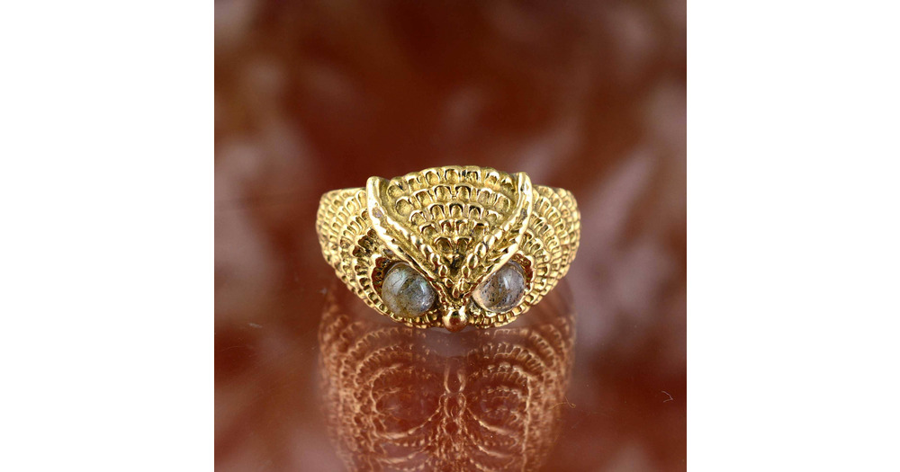 Vintage Gold Owl Ring, Textured Owl Face Jewelry, Statement Animal Ring, Unique Gift for Her, Owl Lo