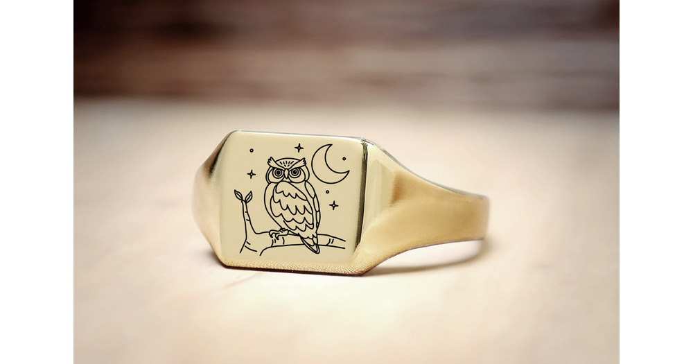 14k Gold Owl Signet Ring · Custom Animal Ring · Personalized Ring · Engraved Ow