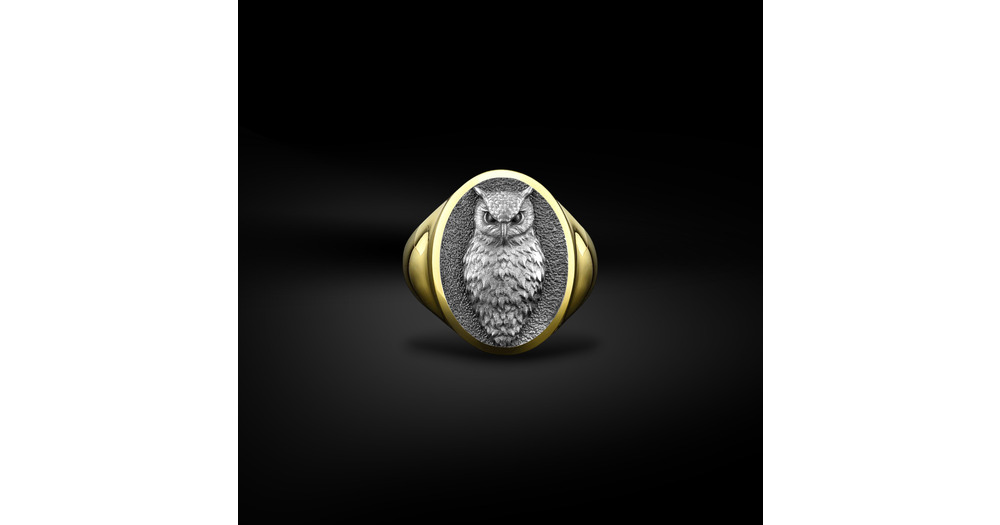 Handmade Owl Bird Engraved Signet Men Ring in Sterling Silver, Oval Owl with Wings Pinky Rings Jewel