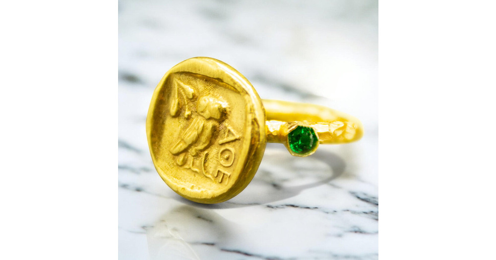Athena Owl Coin Signet Ring | Ancient Greek Owl Coin Ring | 24K Gold Plated | Handmade Gold Plated
