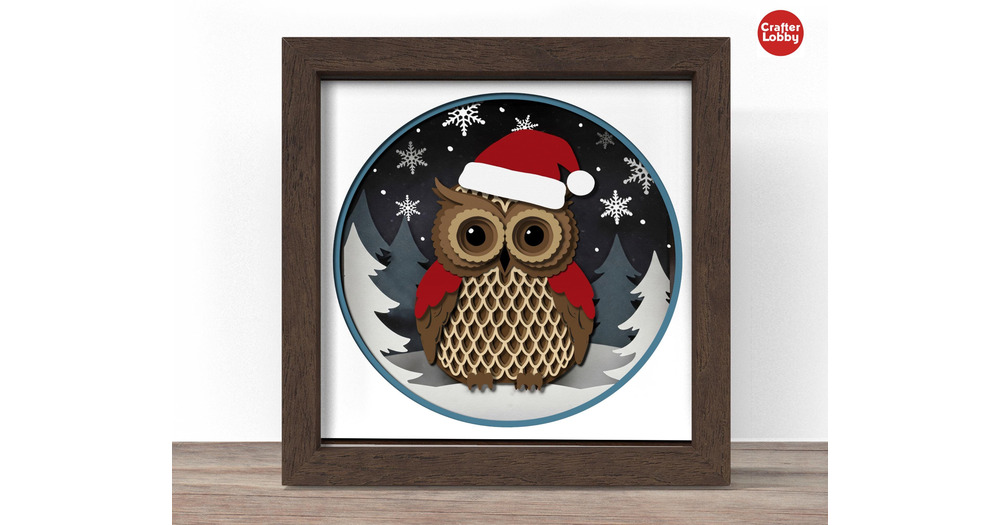 3D Christmas Owl Shadow Box SVG: Papercut Template (Digital Download)