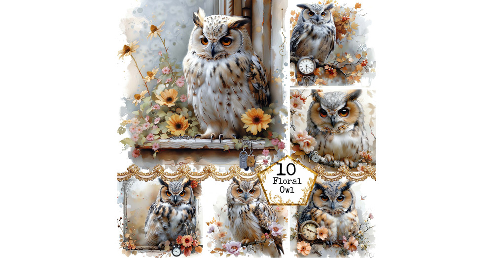 JPEG Shabby Chic Floral Owl Clipart Bundle JPEG Bird Clipart Key and Lock Clipart Instant Download P