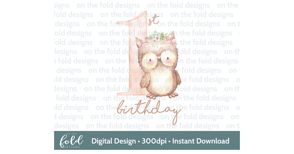 Owl 1st birthday clipart design, pink girly png Floral composition sublimation design PNG instant di