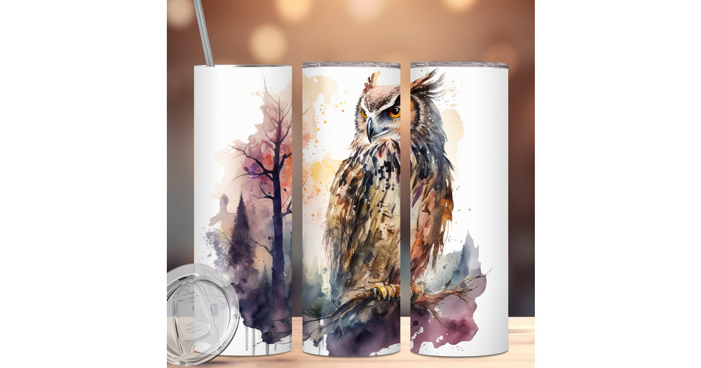 Watercolor Owl tumbler wrap sublimation design for 20oz skinny tumbler colorful Owl tumbler wrap for