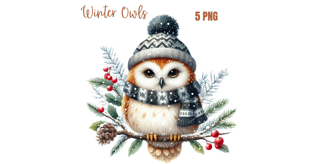 Winter Owl Clipart, High Quality PNGs, Winter Clipart, Christmas PNG, Digital Planner, Watercolor, C