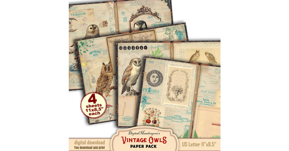 Vintage Owls Ephemera: Junk Journal Paper (Digital Download)