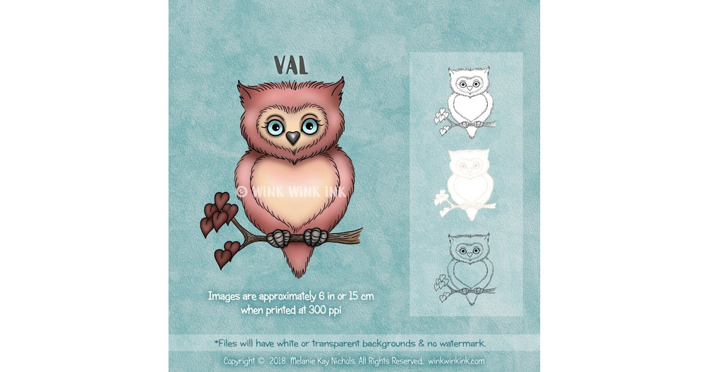 Digital stamp - Val - cute, pink owl with hearts - perfect for Valentine's Day or just to say &q