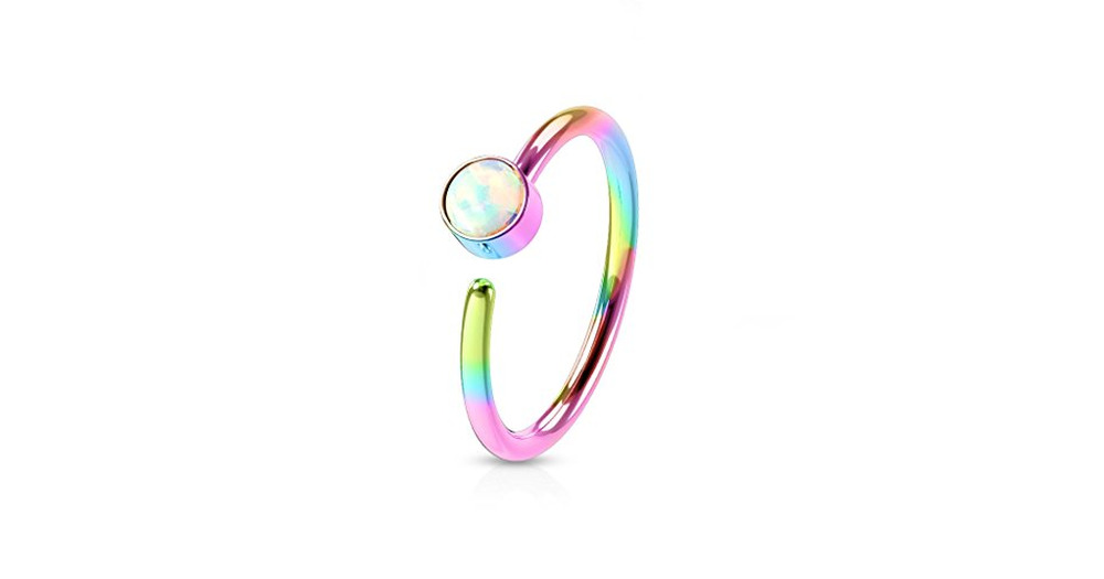 Pierced Owl 20GA 316L Surgical Steel White Synthetic Opal Set Cartilage Helix Nose Ring (Rainbow)