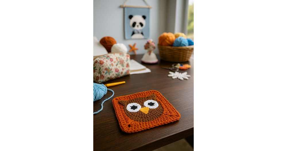 Granny Square Owl, Crochet Pattern, Amigurumi Style Motif, Blanket and Pillow Pattern PDF