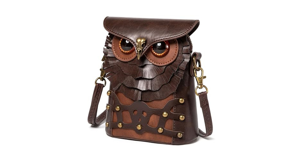 Owl Crossbody Bag Purse Handbag Steampunk Leather Phone Shoulder Pouch Retro Gothic Renaissance Fest