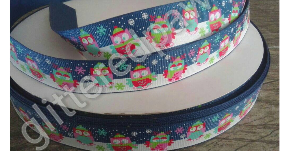 7/8" Winter Owls on Navy Grosgrain Ribbon
