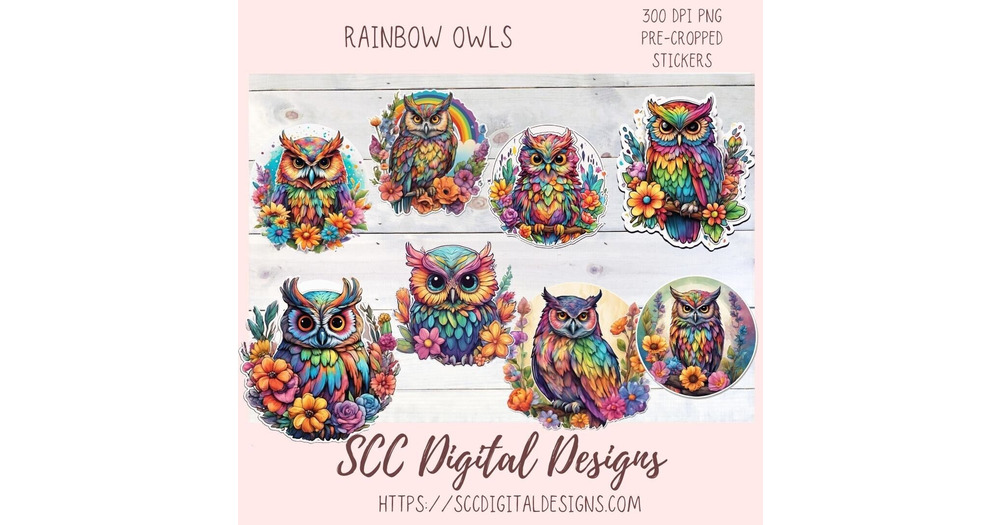 Cute Owl Clipart, Pre-Cropped PNG Images for Digital Planning, Rainbow Owls Art for Crafts and Decor