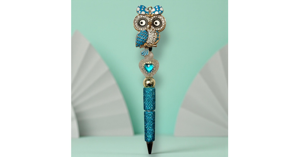 Blue Polka Dot Owl Rhinestone Pen: Jeweled Desk Accessory