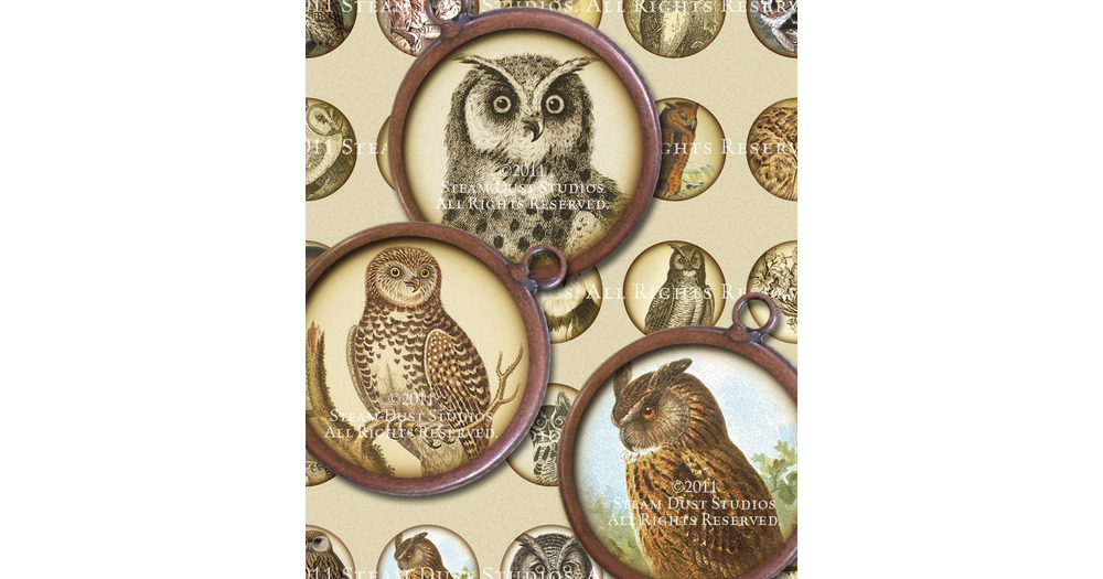 Simply Victorian Owls - Steampunk - 32mm Round Images - Digital Collage Sheet - Instant Download and