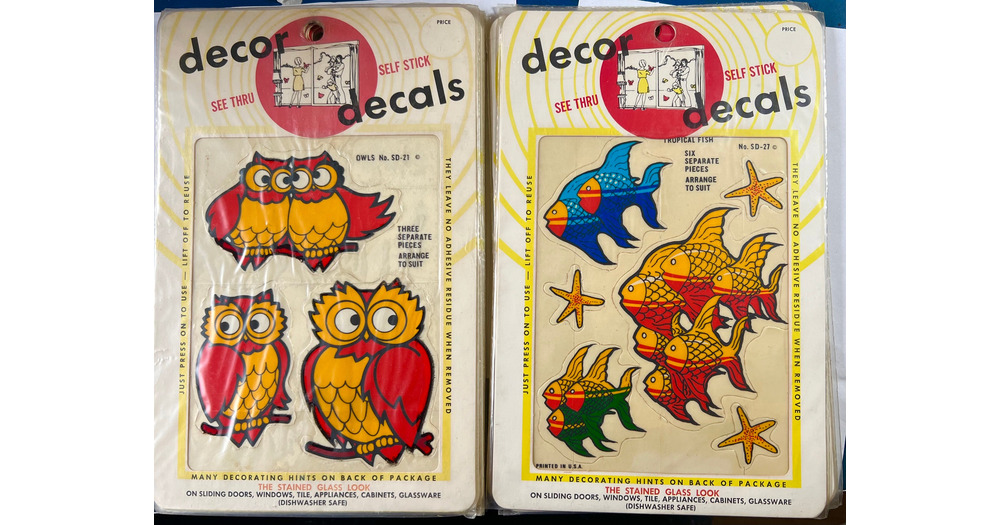 Vintage 1973 Owl or Fish Decor Decals, Reusable Clings, Windows, Walls, Cabinets etc. Your Choice