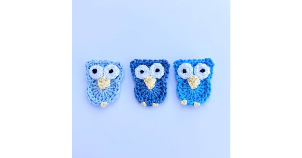 Crochet owls, Crochet applique, 3 small applique owls, cardmaking, scrapbooking, appliques, handmad
