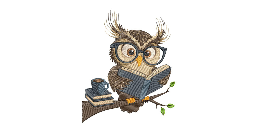 Cute Owl Reading Book Embroidery Design, Owl Machine Embroidery Design, Owl Embroidery Design For Me