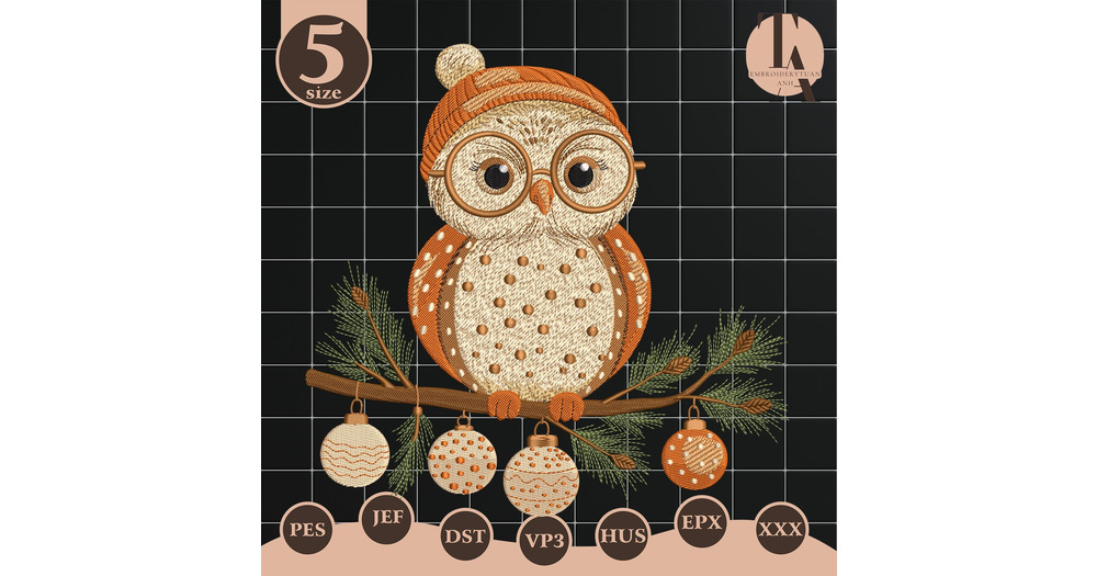 Christmas Owl Embroidery Designs, Spooky Cute Owl Machine Embroidery, Merry Chirtmas Embroidery File
