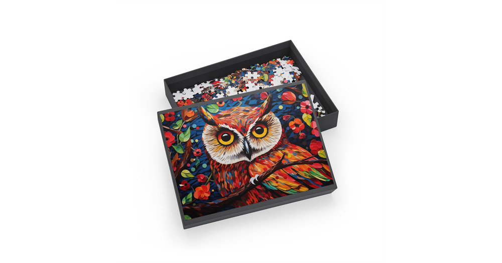 Colorful Owl Mosaic Puzz led - Perfect Gift for Any Occasion (96, 252, 500, 1000-Piece).  Pointillis