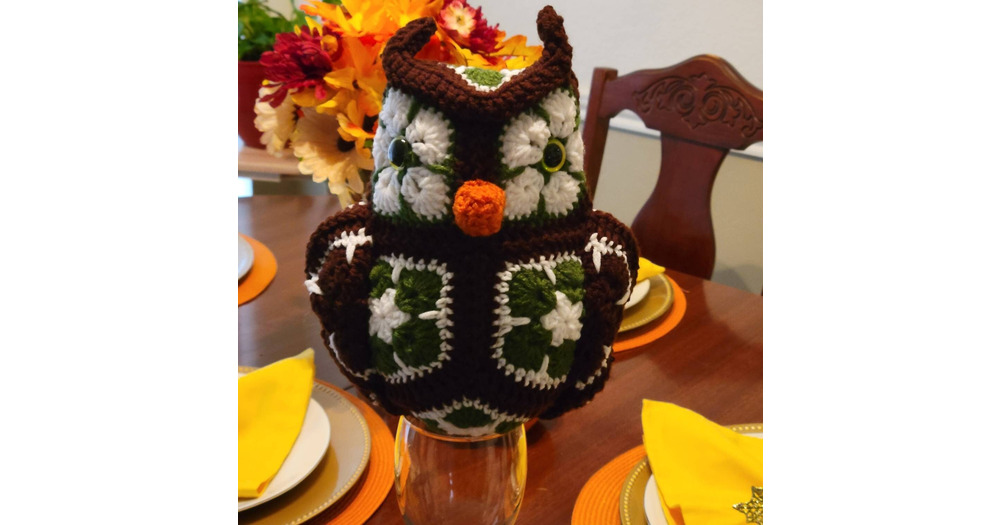 Handmade Crochet little Owl Plushie: African Flower Motif Nursery Decor