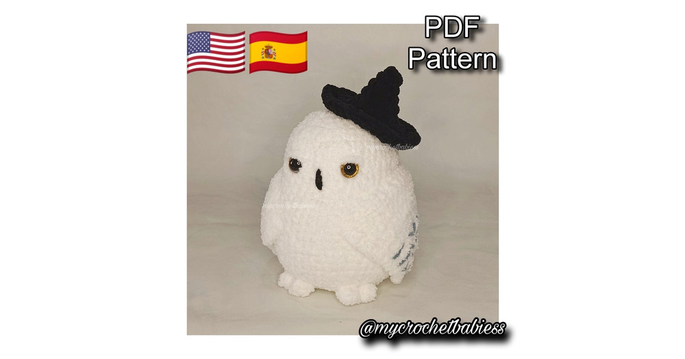 Crochet White Owl with Witch Hat Pattern: Amigurumi Owl (PDF)