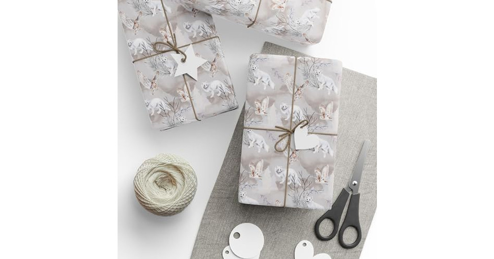 Fox Wrapping Paper Roll, Polar Fox Wrapping Paper, Fox and Owl Winter Gifts Wrapping Paper Roll