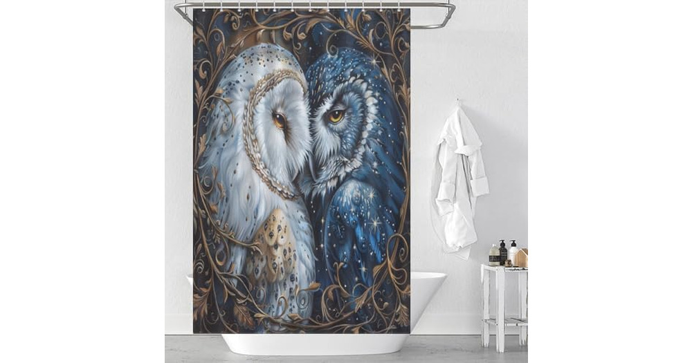 HDESDIS Vintage Art Deco Shower Curtain, Fantasy Star Floral Owl Bird Bathroom Curtain for Rustic Fa