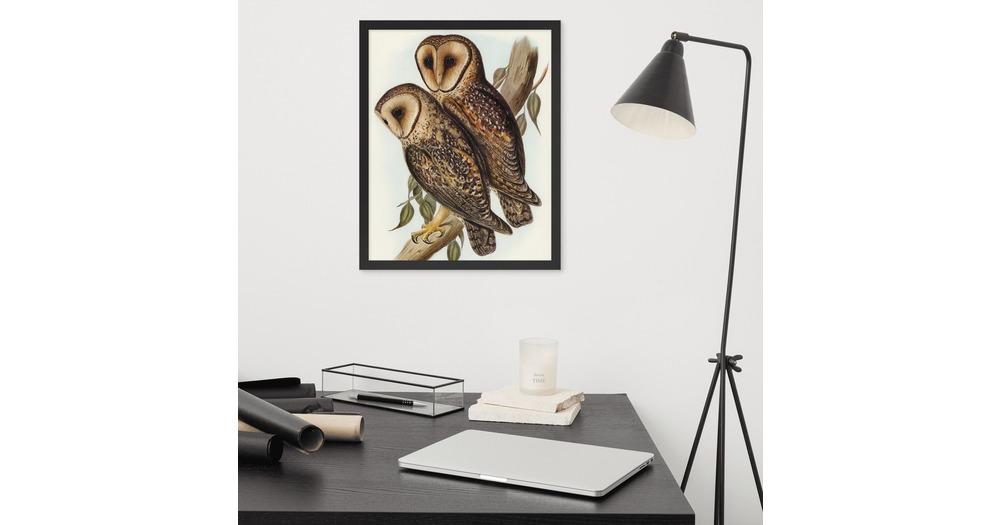 Masked Barn Owl (c.1830's) Reproduction Framed Poster by Elizabeth Gould. From Birds of Australi