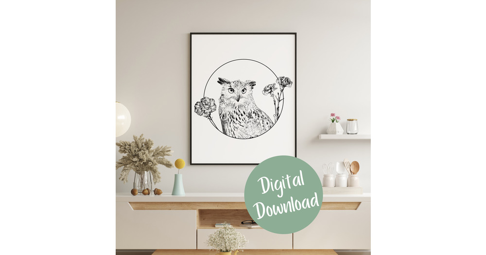 Wildlife Line art Prints, Owl Wall Art, Fineline printable art, Minimal Floral Prints, Botanical Pri