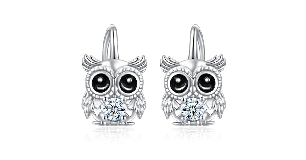 Owl Hoop Earrings Sterling Silver Leverback Owl Hoop Earrings for Sensitive Ears Small Animal Jewelr