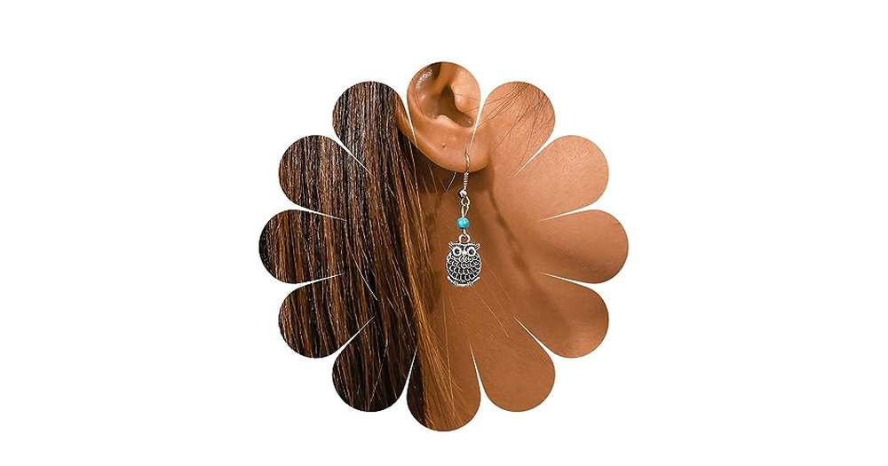 Andelaisi Boho Turquoise Owl Earrings Tribal Turquoise Owl Drop Earrings Vintage Owl Hook Earrings E