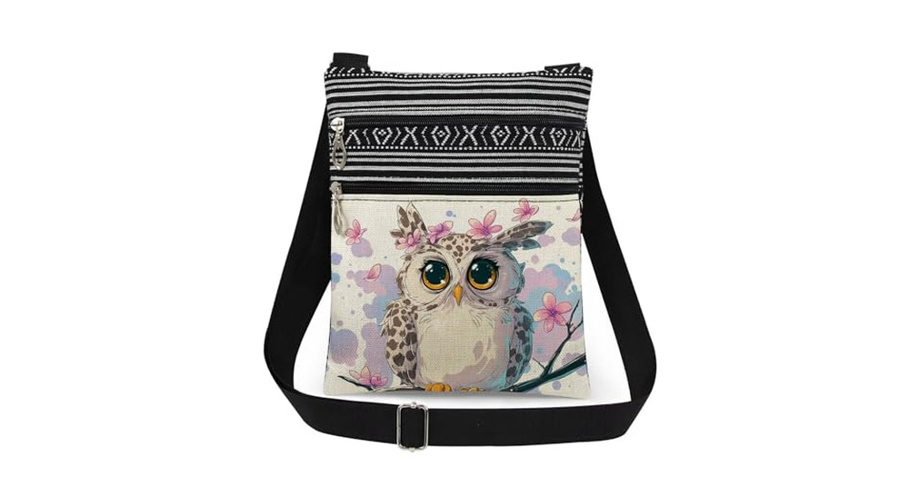 XiaoGalaee Cartoon Olw Women Adjustable Shoulder Strap Crossbody Bag Owl & Purple Floral Print M