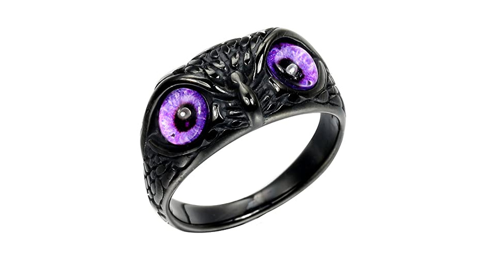 ANIEJUFI Stainless Steel Demon Eye Owl Ring Retro Animal Statement Rings for Women Men Jewelry Gift