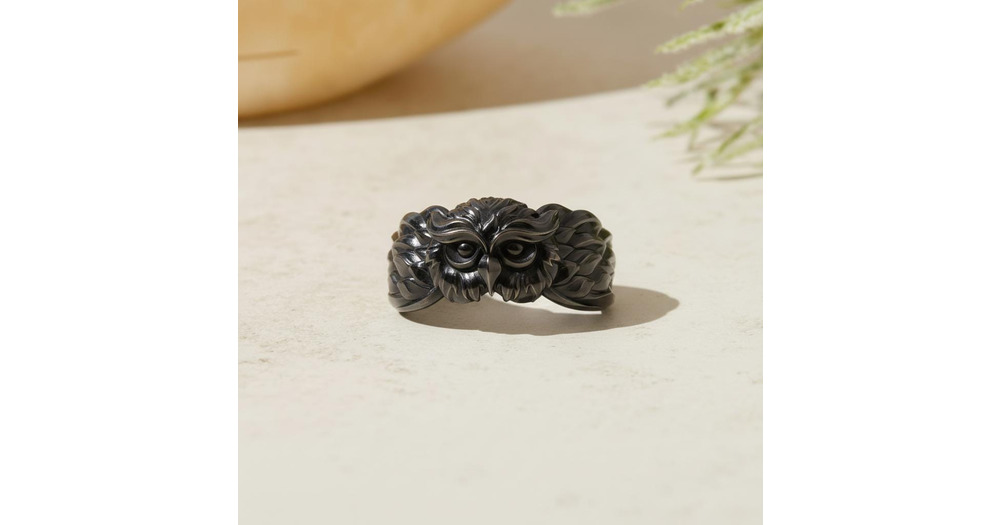 Owl Ring Black Rhodium Sterling Silver Animal Jewelry Wisdom Symbol Gothic Bird