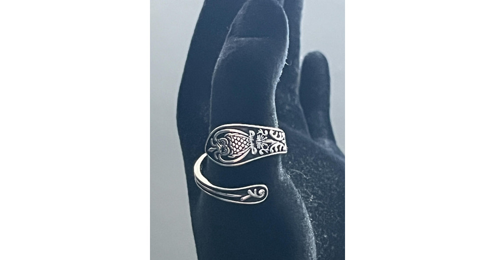 Sterling Silver Owl Ring: Bohemian Floral Spoon Design, Adjustable
