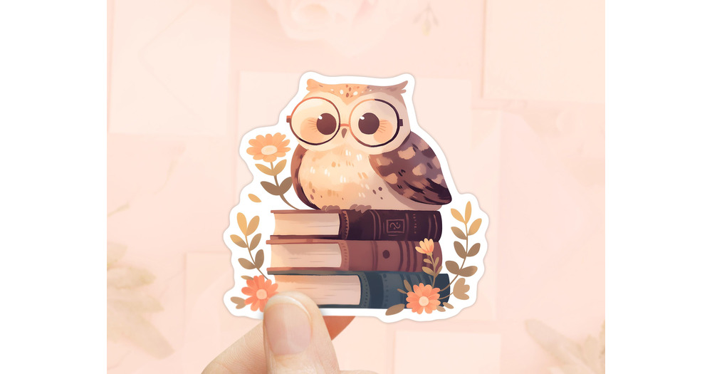 Cute Owl on Books Sticker, Spring Flowers, Waterproof Vinyl, Book Lovers Gifts, Kindle Stickers, Rea