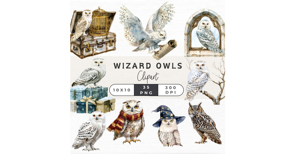 Magic Owls Clipart, Magic School Clipart, Wizard Owl PNG, Watercolor Owl Clipart, Flying Owl, Wizard