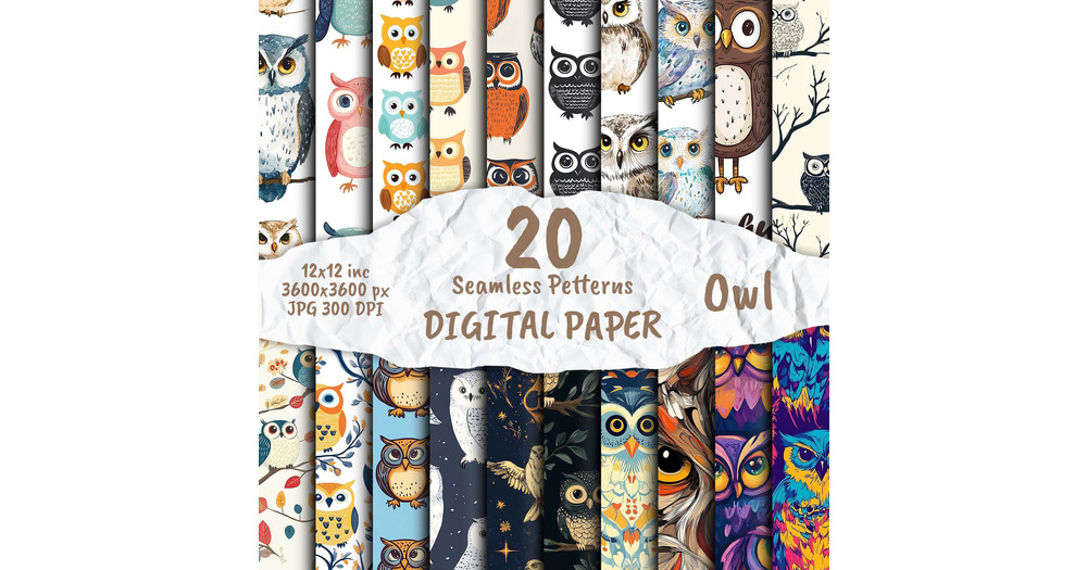 Owl - Digitales Papier, Eulenmuster, Scrapbook Papier Pack, nahtlose Muster, druckbares Eulen Motiv