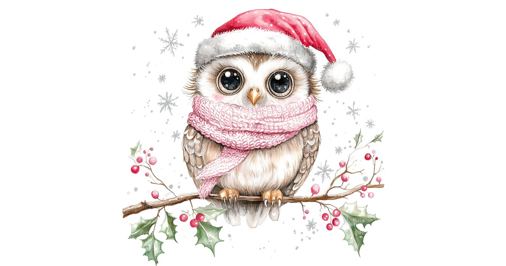 Watercolor Christmas Owl Clip Art Pack: 12 JPG Images