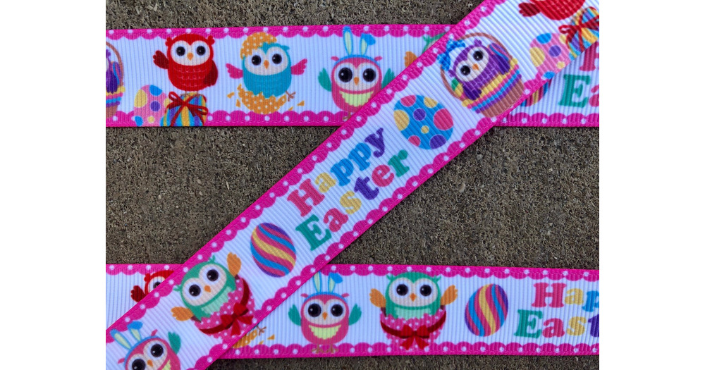 3 yards 7/8" Owl ribbon Happy Easter Owl Bunny ribbon Grosgrain Printed Ribbon Easter Bunny rib