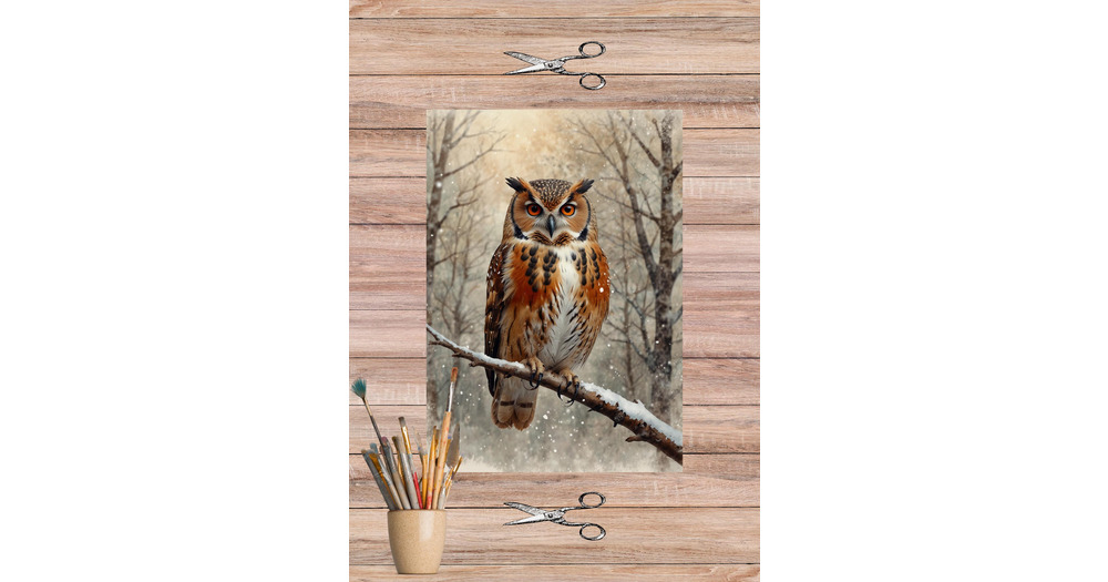 Majestic Owl on the Branch Rice Paper for Decoupage - Winter Eagle Owl Craft Sheet - 5352