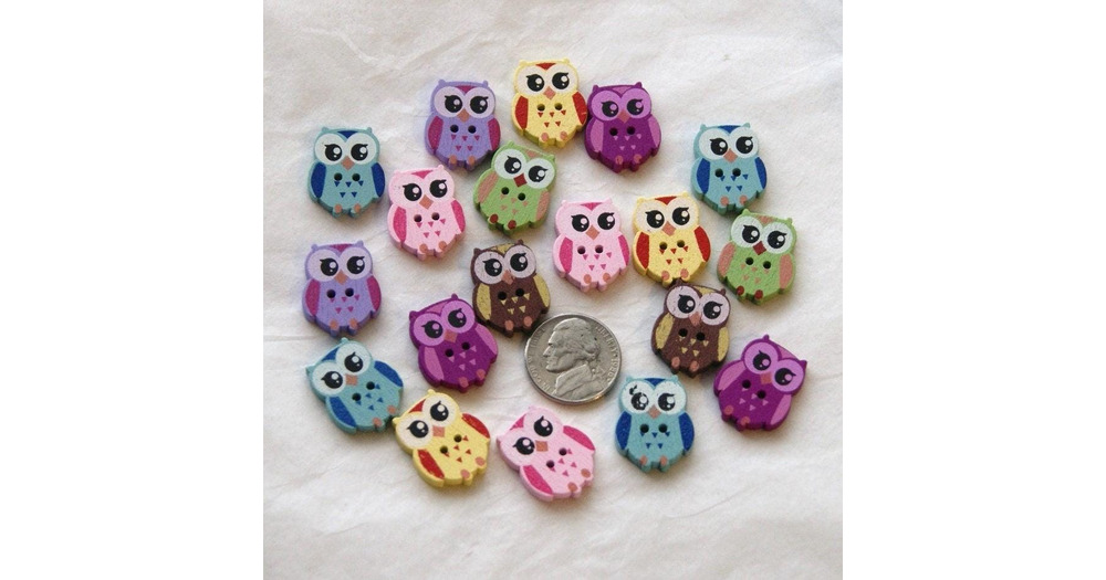 10, 20 Owl Wood Buttons, 7/8",  2 hole  (WD 2)