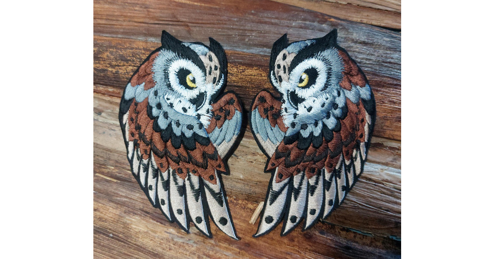 6" Horned Owl ~  Embroidered iron-on patch, owl applique, embroidery art